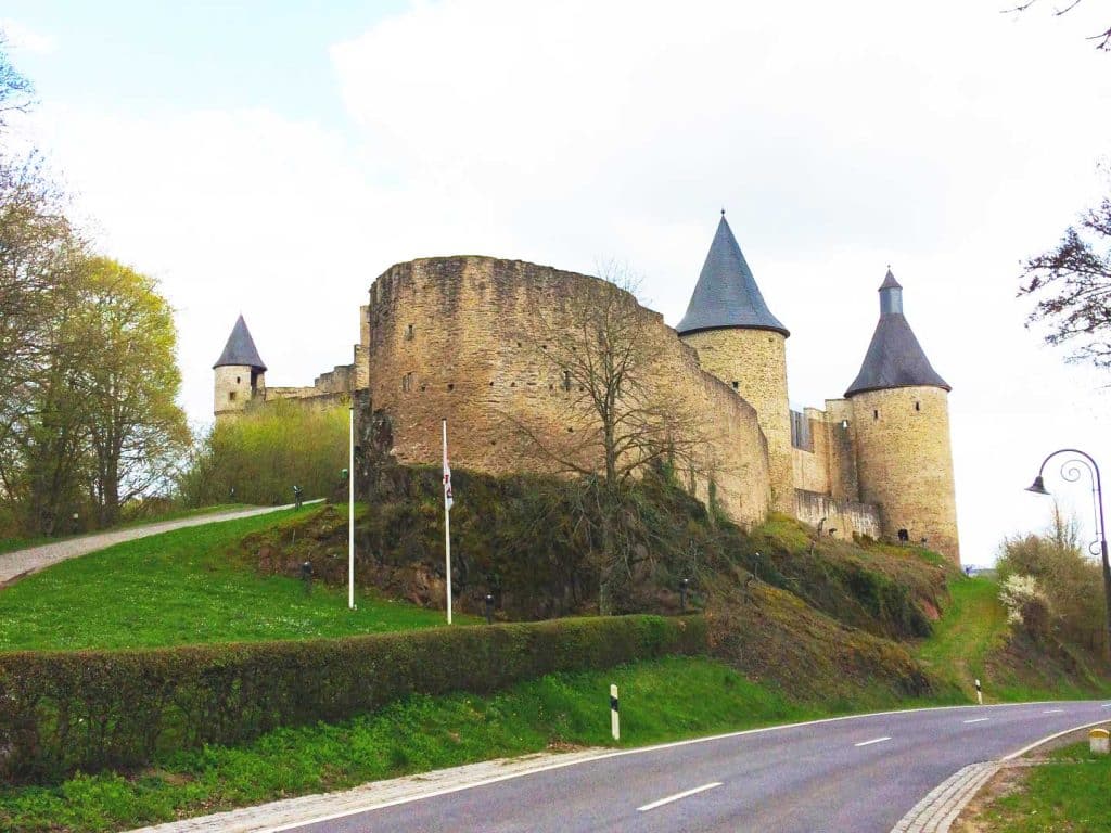 Grand château fort du Luxembourg, le château de Bourscheid est une impressionnante construction coiffée de tours rondes, caractéristiques de l’époque. Ce château aurait été construit au 10e siècle, avec une première phase d’agrandissement au 14ième siècle et une deuxième au 15e siècle. Son enceinte est entourée par six tours gothiques. Il a été classé Monument Historique en 1936.